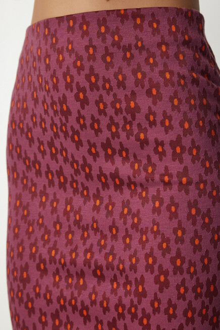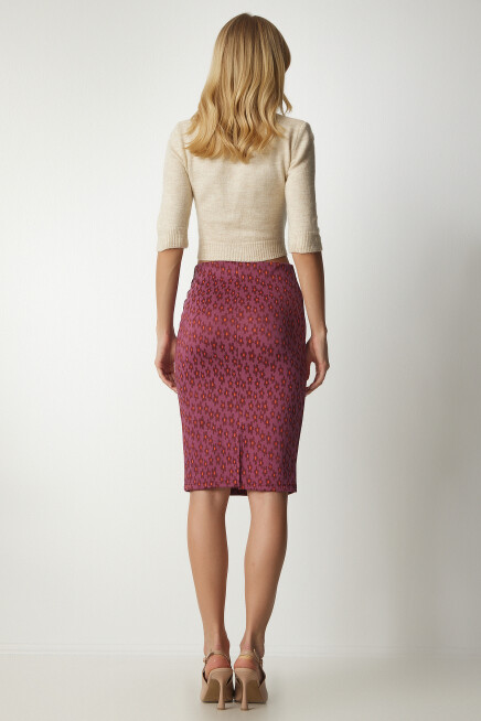 Elastik bel, arkadan yırtmaçlı, esnek yapılı, likralı, desenli, triko kalem etek