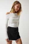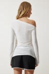Dökümlü yaka, uzun kollu, yanlardan büzgü detaylı bluz