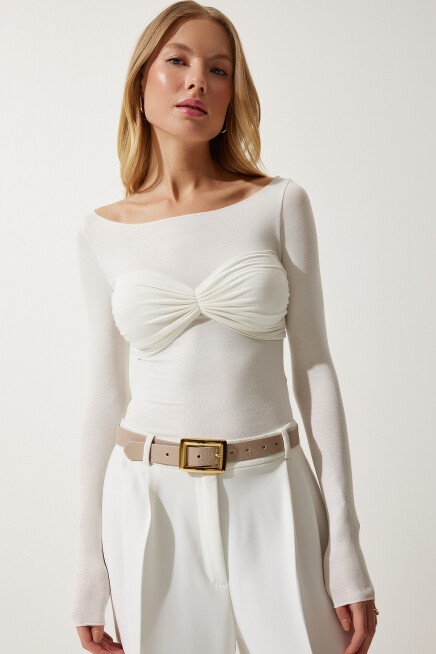 GÖĞÜS DETAYLI İNCE TRİKO BLUZ
