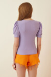 KARE YAKA BALON KOLLU ÖRME BLUZ