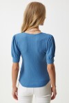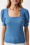 Kare yaka, balon kollu, manşetli örme bluz