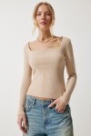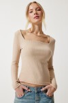 KARE YAKA FİTİLLİ ÖRME BLUZ