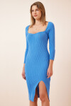 Kare Yaka, Uzun Kollu, Yırtmaçlı Triko Elbise