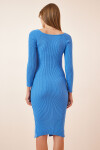KARE YAKA YIRTMAÇLI TRİKO ELBİSE