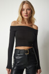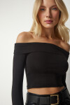KATLI CARMEN YAKA ÖRME CROP BLUZ