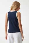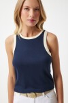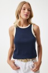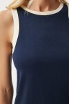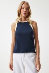 Kontrast kol ve yaka detaylı, bisiklet yaka, kolsuz, pamuklu örme bluz