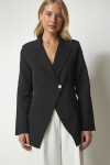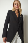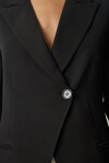Kruvaze yaka, vatkalı, astarlı, cepsiz, tek düğme kapamalı blazer ceket