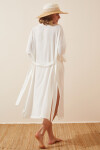Kendi Kumaşından Kuşak Kemerli, Yanlardan Yırtmaçlı, Uzun, Krinkıl Viskon Kimono