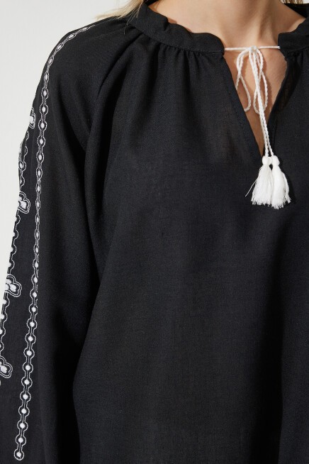 NAKIŞLI OVERSİZE KETEN BLUZ