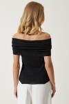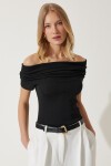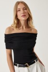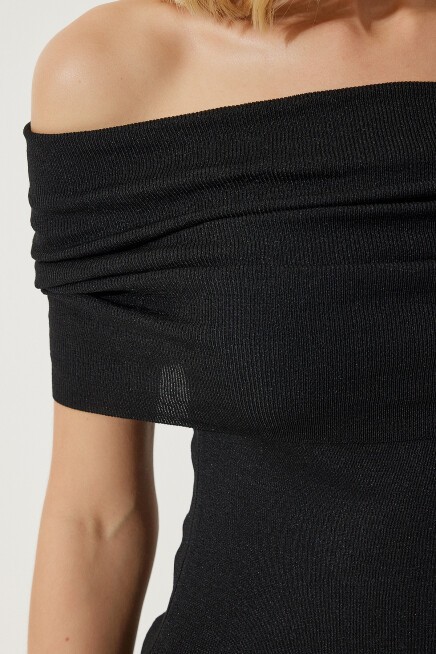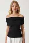 Kısa kollu, madonna yaka, esnek yapılı, triko bluz