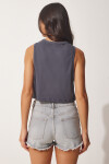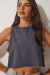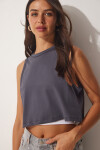 Halter yaka, bol, rahat kalıp, pamuklu penye crop t-shirt