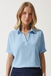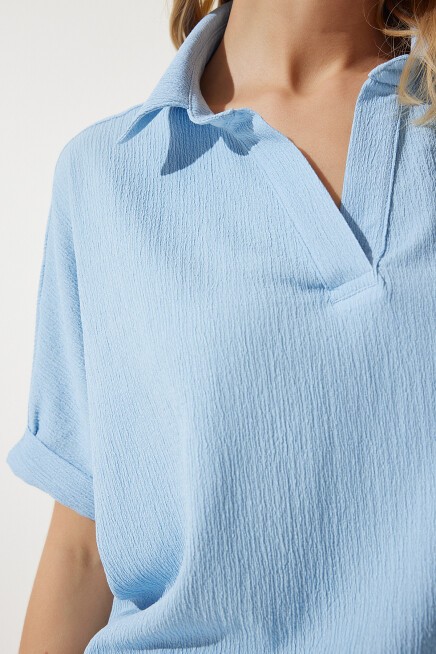 POLO YAKA ÖRME KRİNKIL BLUZ