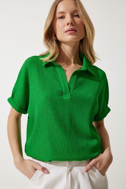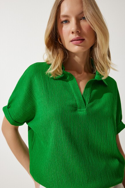 POLO YAKA ÖRME KRİNKIL BLUZ