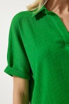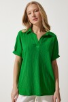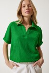 Polo yaka, düşük omuzlu, esnek yapılı, geniş kesim, örme krinkıl bluz
