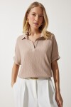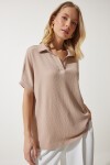 POLO YAKA ÖRME KRİNKIL BLUZ