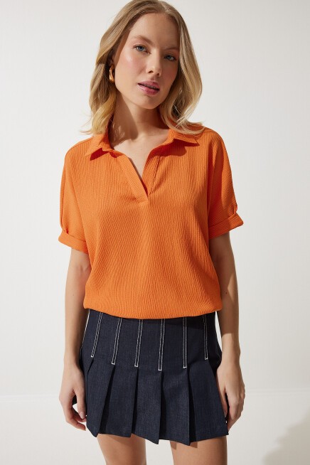 POLO YAKA ÖRME KRİNKIL BLUZ