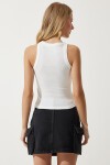 Kolsuz, halter yaka, fitilli, triko taş işlemeli crop bluz