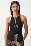 Önü taşlı kurdeleli, fermuarlı, tok yapılı dokuma bluz.