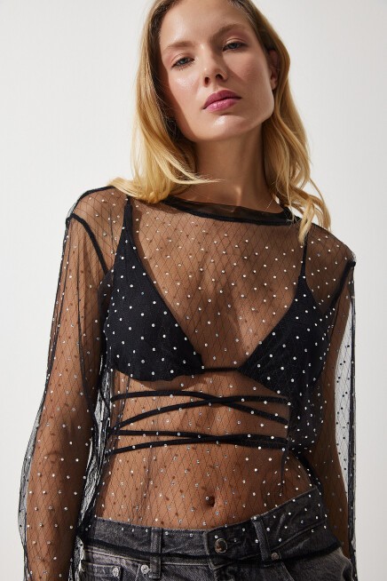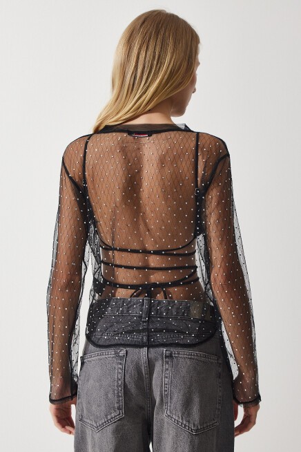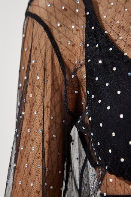 TAŞLI TRANSPARAN ÖRME BLUZ