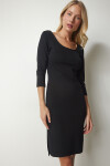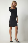 U yaka, yarım kol, yandan yırtmaçlı, esnek yapılı örme elbise