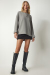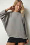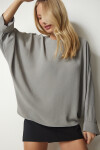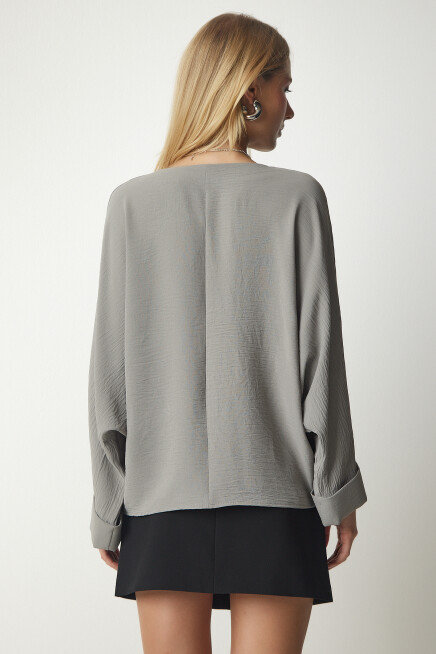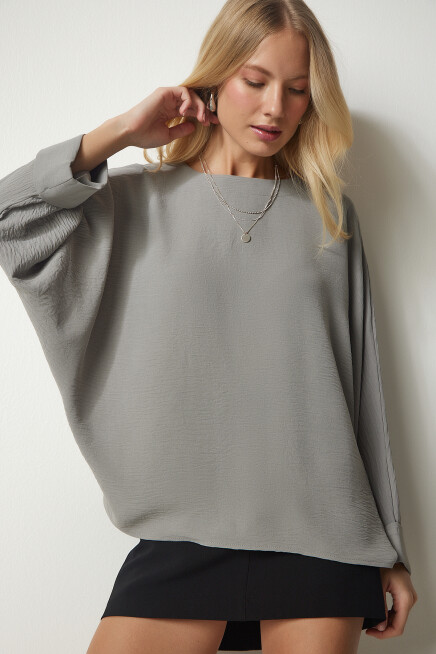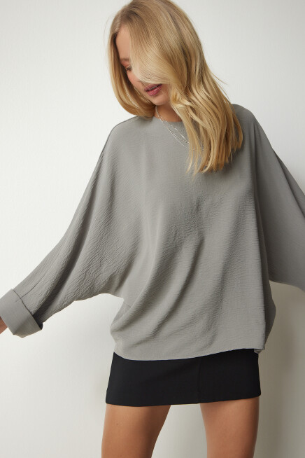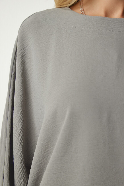 Bisiklet yaka, yarasa kollu, geniş kesim, dökümlü ayrobin bluz