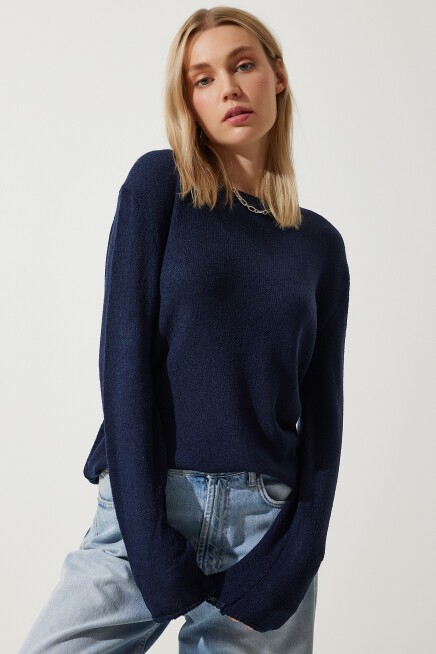 Hafif kayık yaka, rahat kalıp, yazlık merserize triko bluz