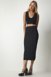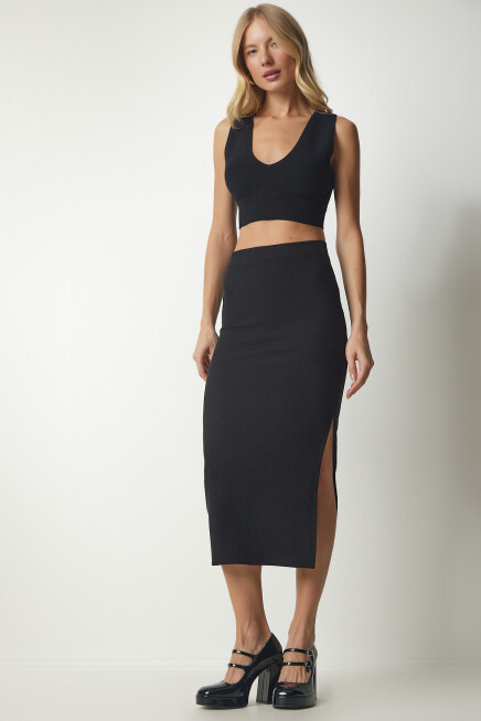 Elastik bel, esnek yapılı, tek yırtmaçlı, fitilli örme kalem etek