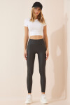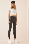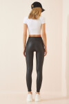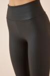 Yüksek bel, şardonlu, şekillendirici, toparlayıcı suni deri tayt.